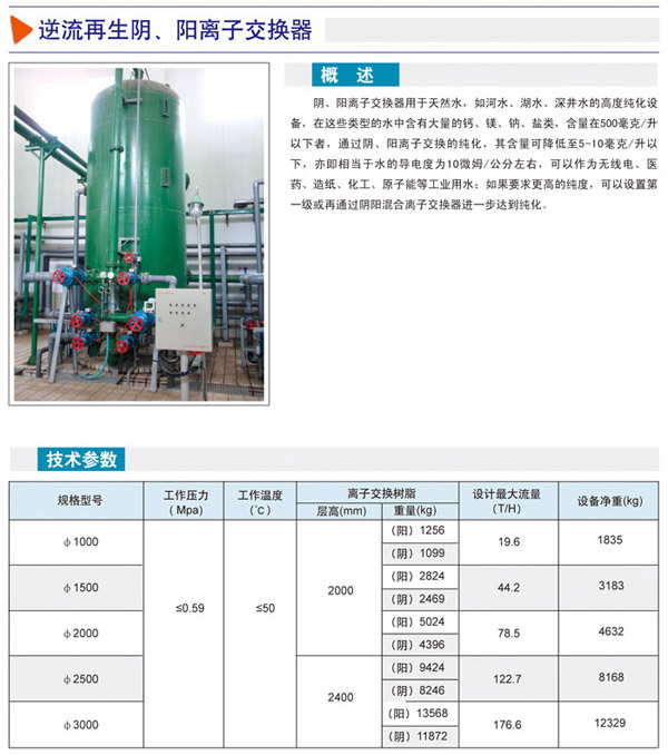 逆流再生阴、阳离子交换器